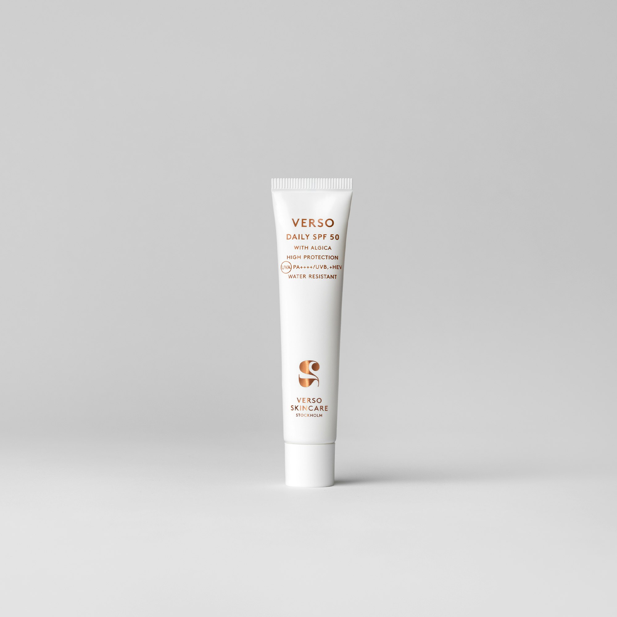 Verso Daily SPF 50 is an excellent choice for all skin types. Besides its hydrating and protective properties, Algica effectively blocks pollution and absorbs excess oil, sweat, and impurities, making the product perfectly suitable even for oily skin. The multifunctional ingredient provides a smooth, luxurious feeling when applying Verso Daily SPF 50 to the skin.
